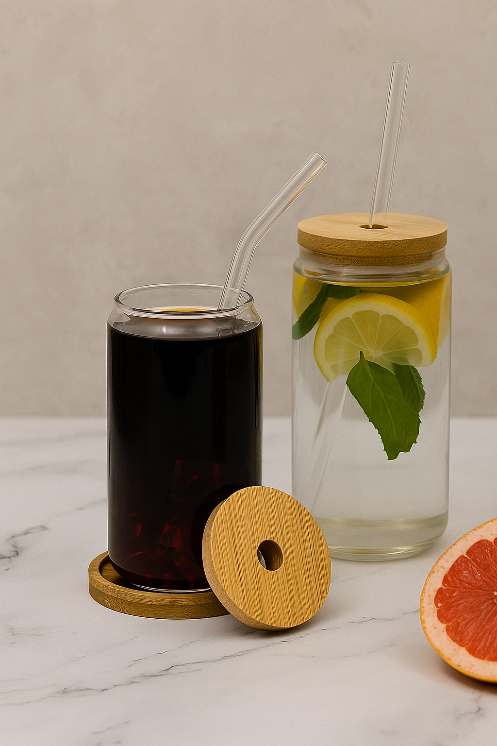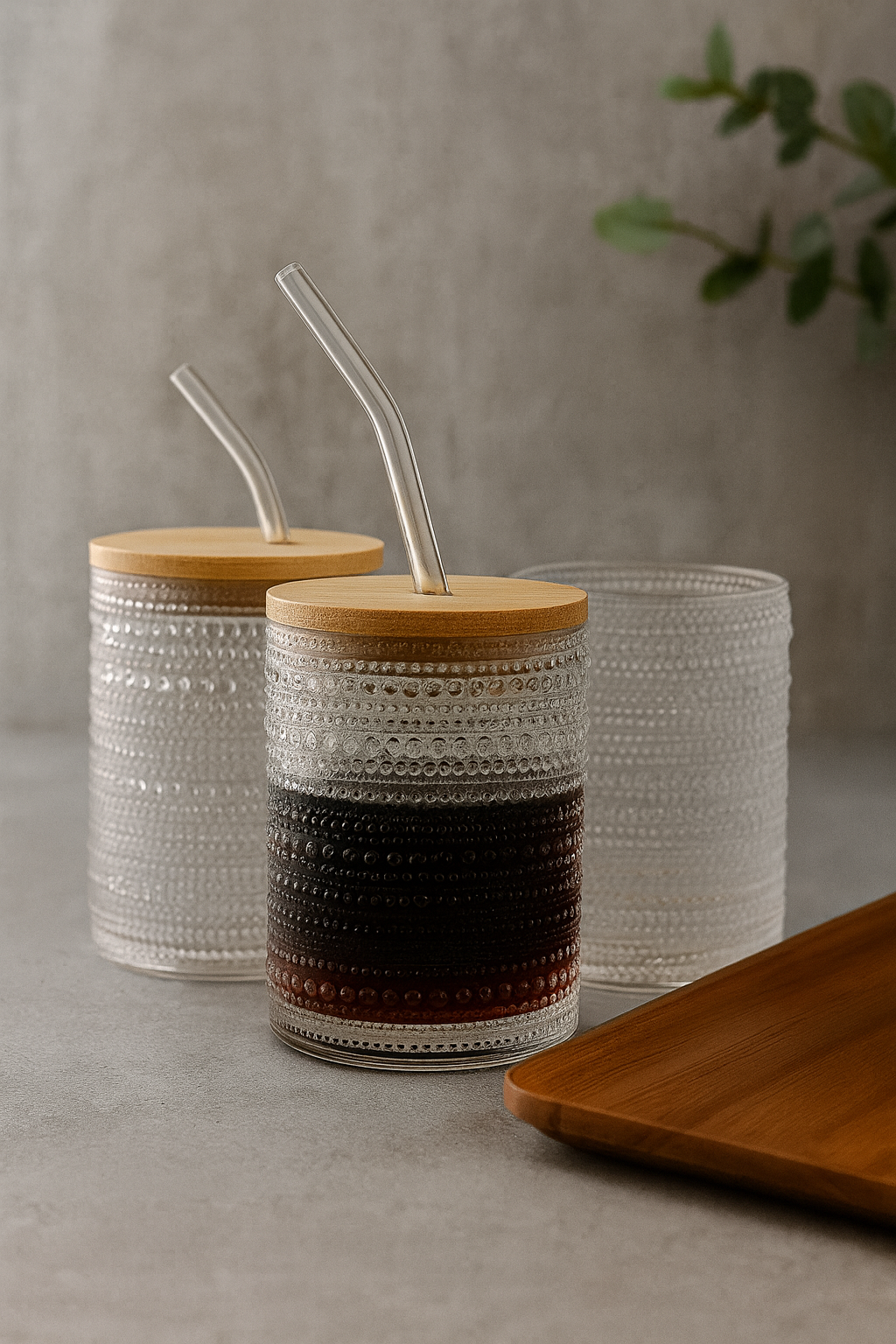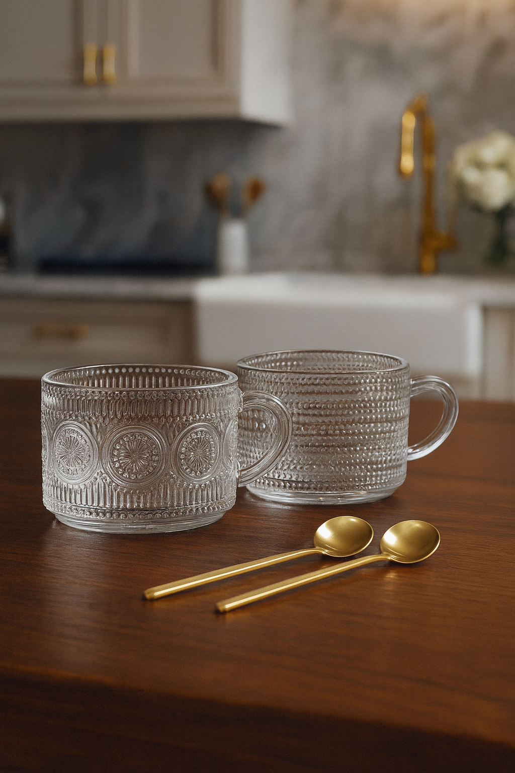 Vintage Glass Coffee Mugs with Lids and Spoons